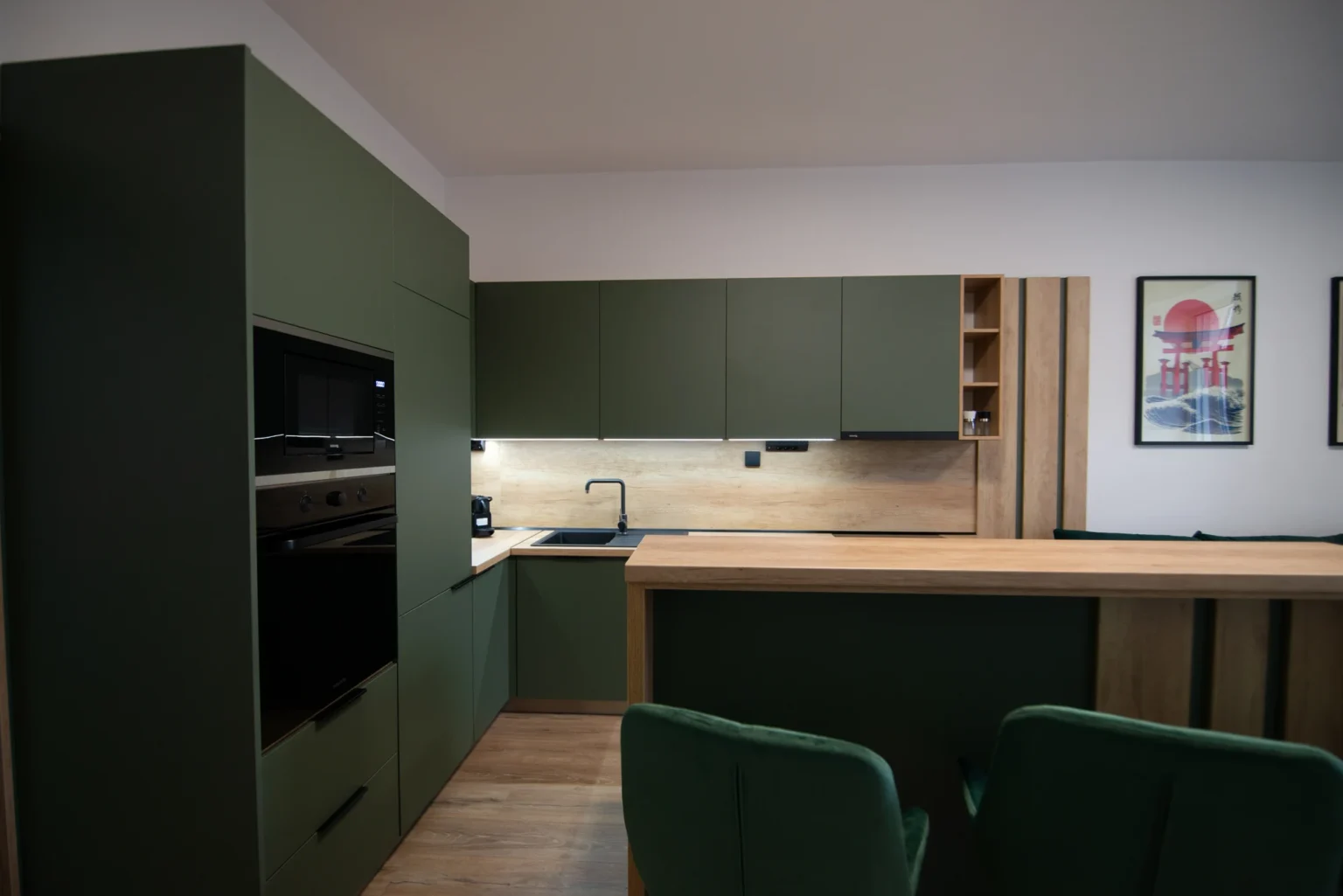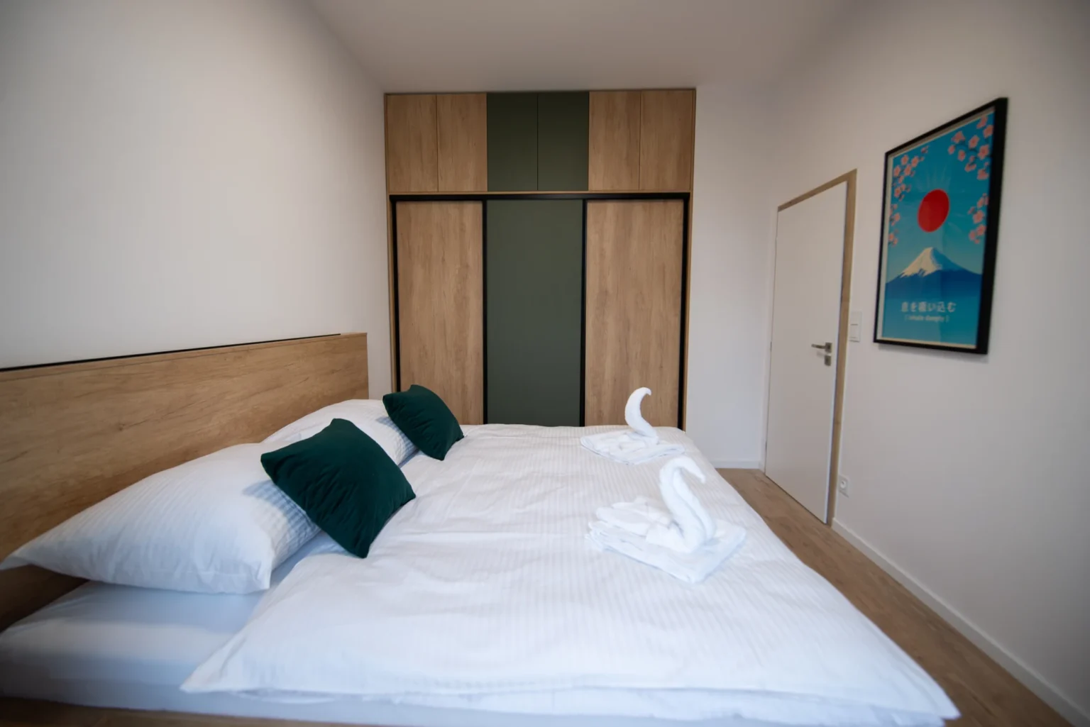 Apartmán One Eleven je úplne nový, moderný a starostlivo navrhnutý apartmán pre 4 osoby, ktorý kombinuje minimalistický dizajn, kvalitné materiály a pohodlie domova. Interiér je ladený do teplého dubu Nebraska a elegantnej matnej zelenej, čo vytvára príjemnú, harmonickú atmosféru.
