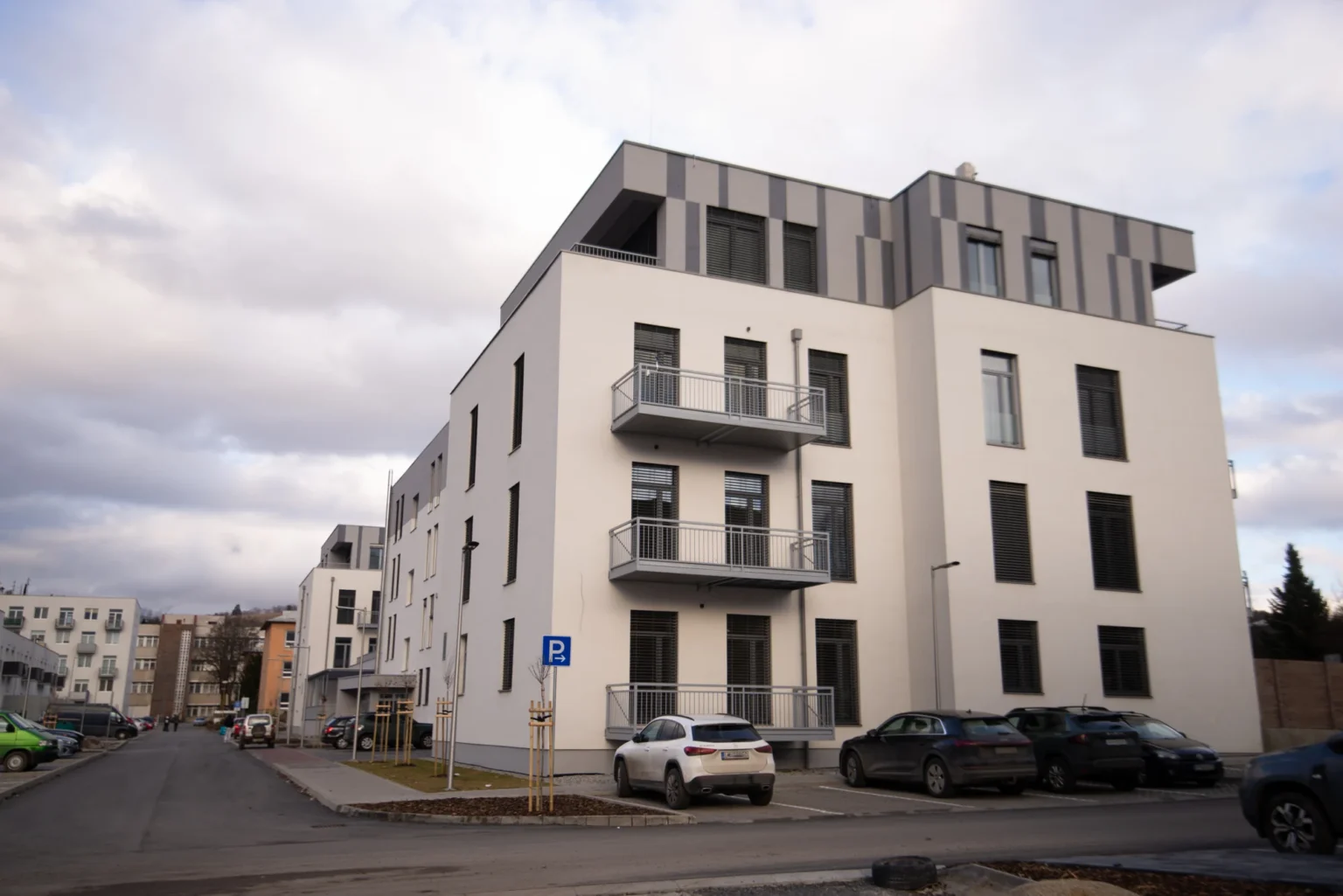 K apartmánu prislúcha súkromná predzáhradka, ktorá je ideálnym miestom na rannú kávu alebo večerný relax na čerstvom vzduchu. Súčasťou vonkajšieho zázemia je aj vyhradené parkovacie miesto.